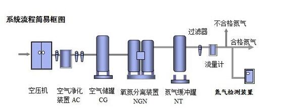 1.只需配備無油或微油空氣壓縮機(產(chǎn)品見成套設(shè)備配備)、啟動制氮機電源即可開機生產(chǎn)氮氣,氮氣純度可通過調(diào)整氮氣流量調(diào)節(jié),調(diào)節(jié)范圍95%~99.99%。